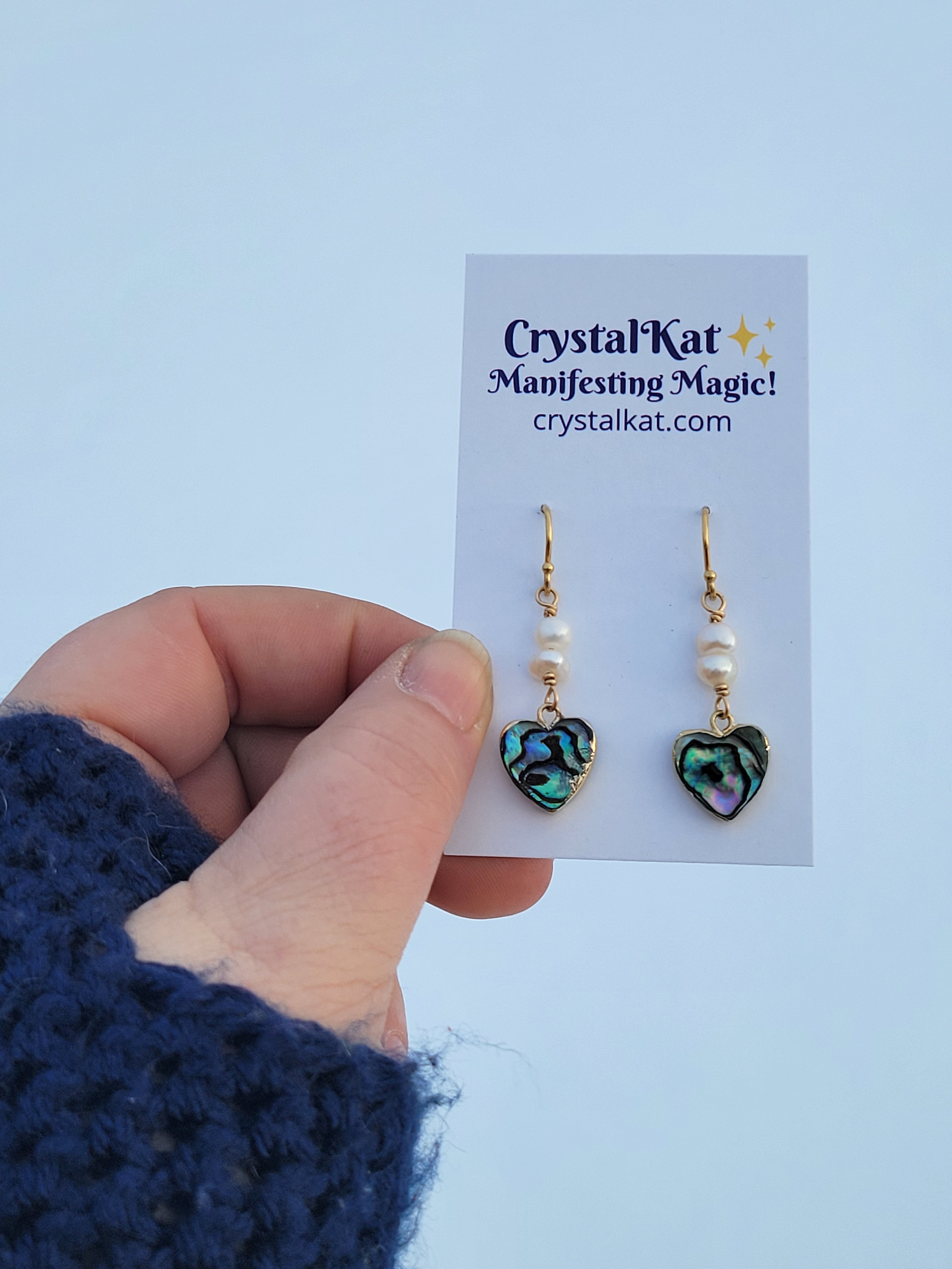 Dive into oceanic magic with the Sea of Love Earrings—a bold fusion of shimmering abalone and lustrous pearls set in luxe gold-filled metal. Each pair features delicate heart charms that whisper of mermaid enchantment and timeless romance. These aren't just earrings; they're talismans of peace, harmony, and inner wisdom. Wear them to channel your power, embrace love in all its forms, and let the sea's mystical energy flow through you.
