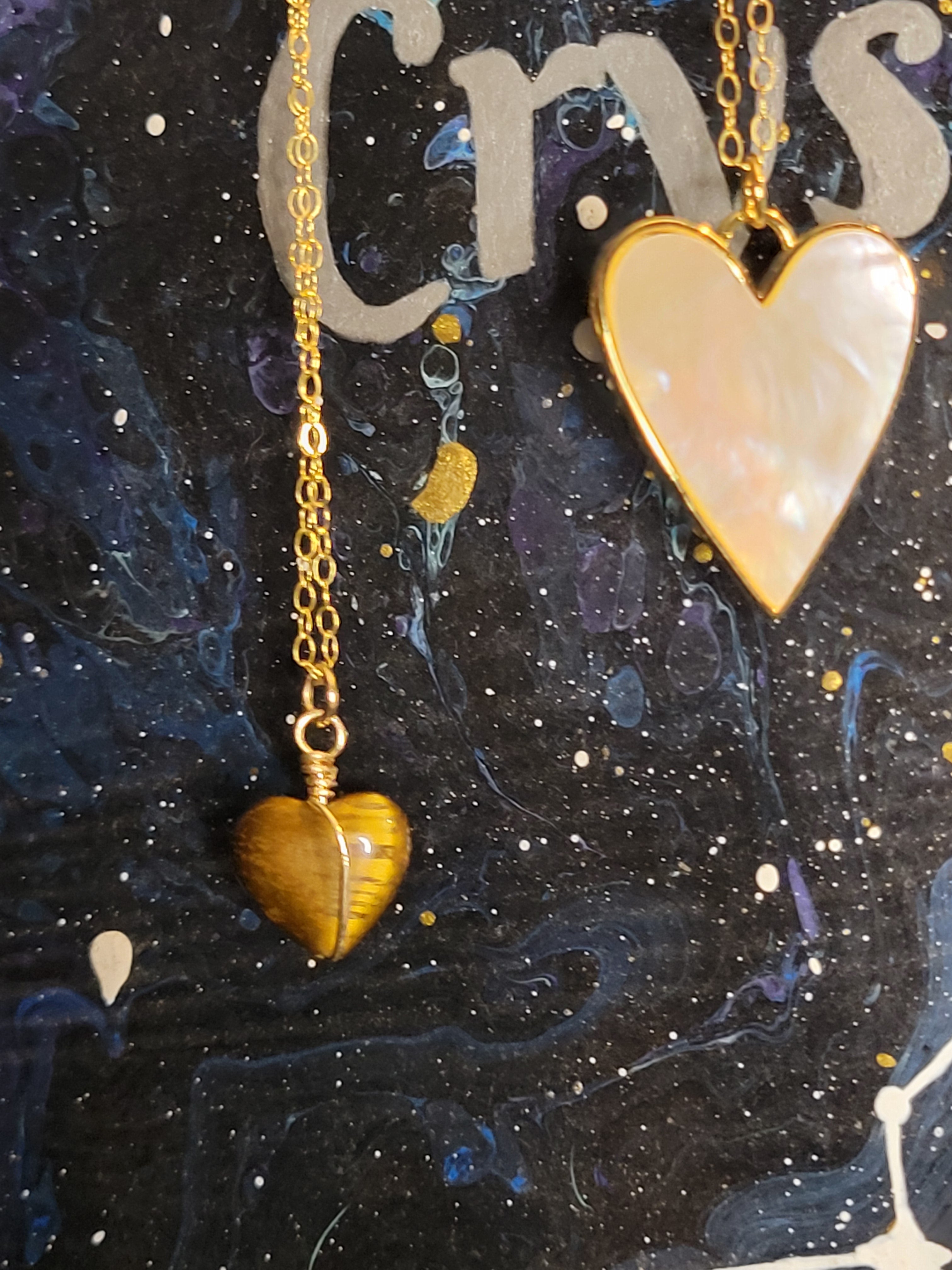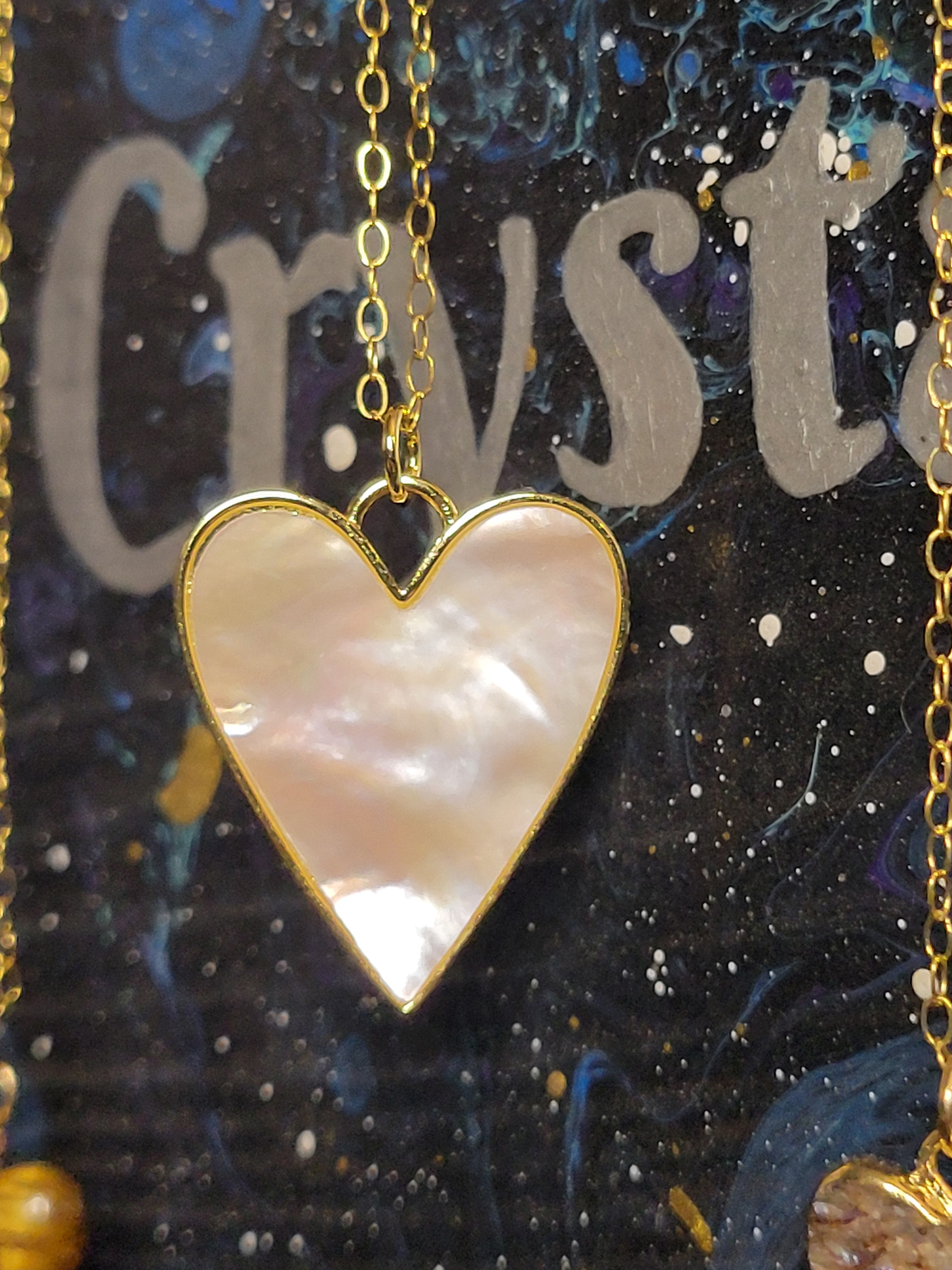 Embrace your power with this Heart of Gold necklace—a fearless fusion of strength and tenderness. The gold-filled design paired with luminous mother of pearl creates a striking balance between boldness and grace, embodying both nurturing energy and harmonious spirit. This isn't jewelry for the timid; it's for those who lead with their hearts while standing firm in their convictions. A daring declaration that love and resilience belong together.